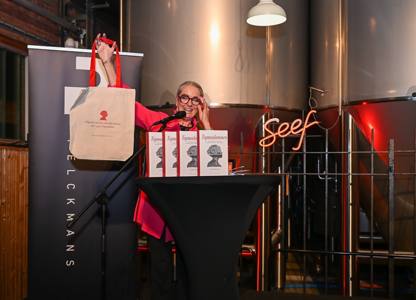 Op 23 oktober 2025 werd in de ABC Brouwerij op het Eilandje onder grote belangstelling het boek Topmadammen voorgesteld aan genodigden.