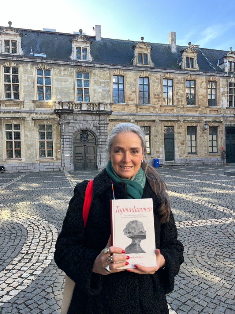 Onderweg leest Carolien korte stukjes voor uit haar boek over een tiental Antwerpse Topmadammen.